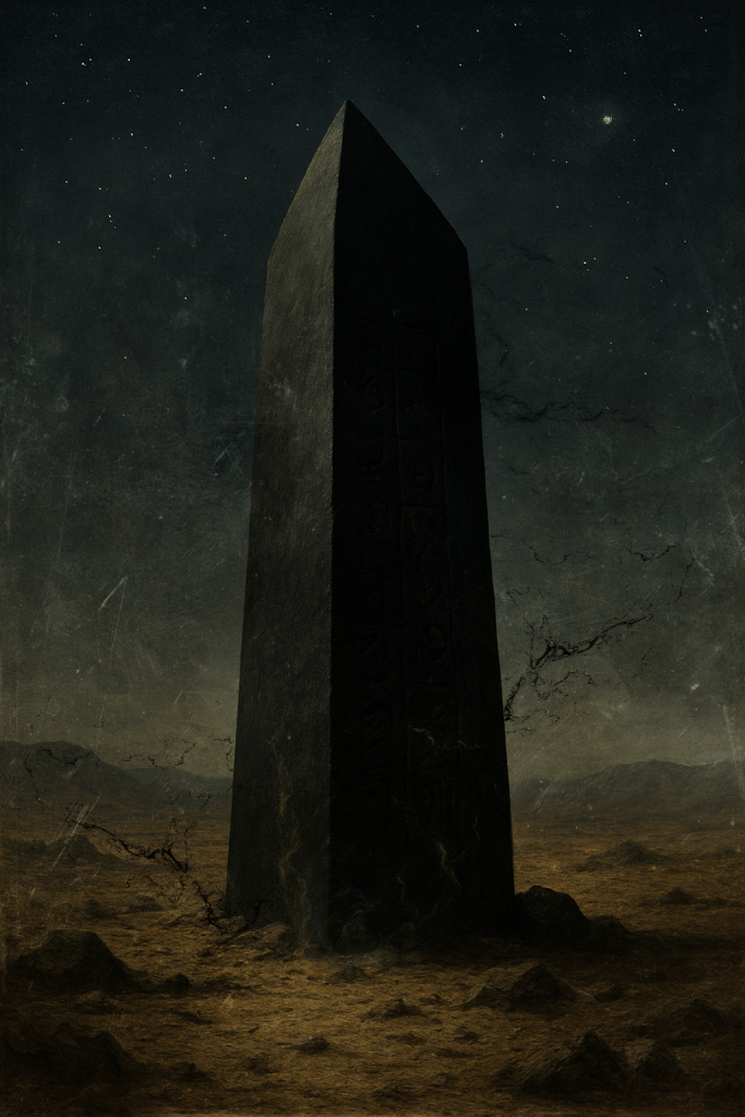 The stone monument stands,