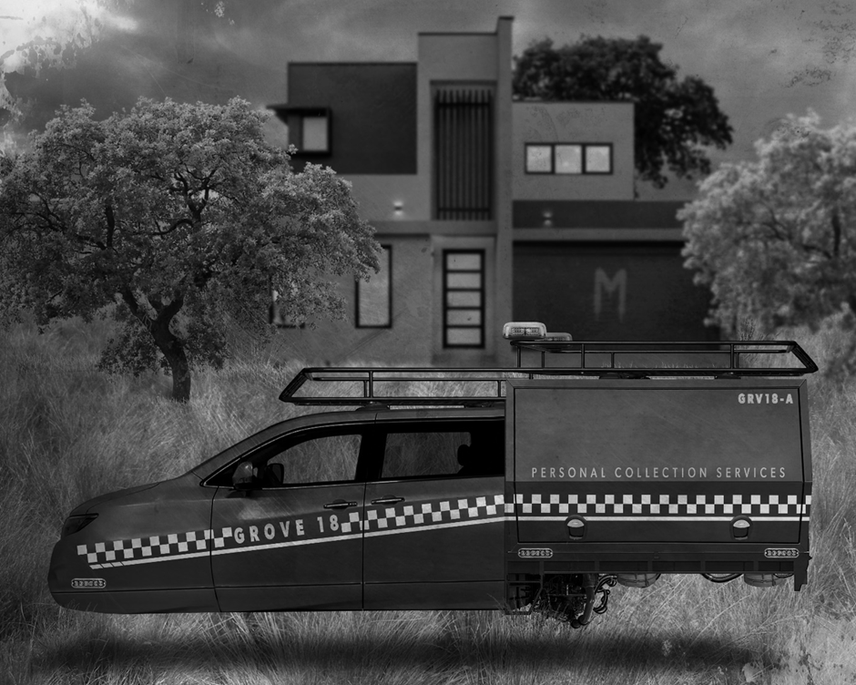 Suicide has become so commonplace now that those who choose to end their lives, need only to paint a white letter M on their front door, there is no stigma, and no other explanation is necessary. The letter on the door informs the Personal Collection Services, known everywhere as the Death Collectors, that the resident is sadly resting within. Death Collectors consist of community volunteers, these small teams recover and deliver the dead to grove crematoriums, a service that provides some final dignity to those whose hearts were broken beyond repair. Although unspoken, it is believed that the white letter M signifies, that even though there is now peace, they are still a victim of Mother.